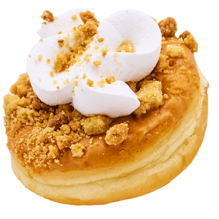 Nichts passt besser zum Herbst als Pumpkin Spice, oder? Die intensive Glasur auf diesem fluffigen Donut enthält die typischen Pumkin Spice Gewürze, die durch das cremige Cream Cheese-Topping (made with Violife Creamy) perfekt ausbalanciert werden. Der Crumble mit braunem Zucker sorgt außerdem für einen leichten Crunch.