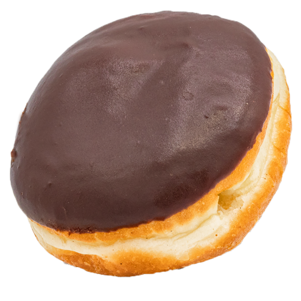 Ein fluffiger Donut, gefüllt mit hausgemachter Vanillecreme und überzogen mit einer Zartbitterschokoladen-Ganache aus Original Beans Schokolade. Aufgrund der Art und Weise der Aufbewahrung kann der Donut mit verschiedenen Nüssen in Kontakt kommen.