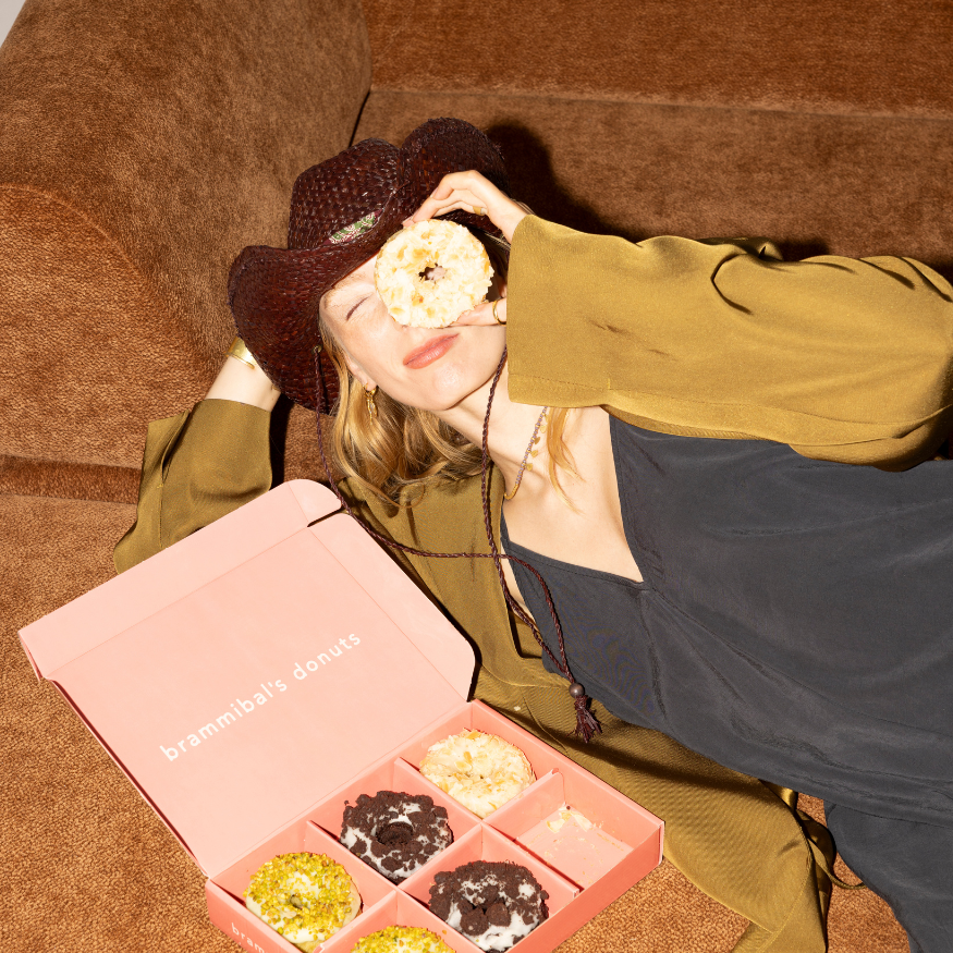 Diesen Sommer haben wir uns mit Snooze Project zusammengetan, um den 1. Geburtstag ihres modularen Levi Sofas zu feiern. Gemeinsam haben wir eine besondere Brammibal’s Stoffkollektion kreiert, inspiriert von unserer bunten Donut-Welt. Von Pistaziengrün über Nougatbraun bis hin zu Zuckergussrosa – die Stoffe spiegeln die Geschmacksrichtungen unserer Donuts wider. Das Sofa & den Sessel könnt ihr live in unseren Stores in Hamburg Schanze und Berlin Schöneberg sehen.
