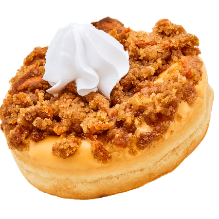 Nichts passt besser zum Herbst als Pumpkin Spice, oder? Die intensive Glasur auf diesem fluffigen Donut enthält die typischen Pumkin Spice Gewürze, die durch das cremige Cream Cheese-Topping (made with Violife Creamy) perfekt ausbalanciert werden. Der Crumble mit braunem Zucker sorgt außerdem für einen leichten Crunch.